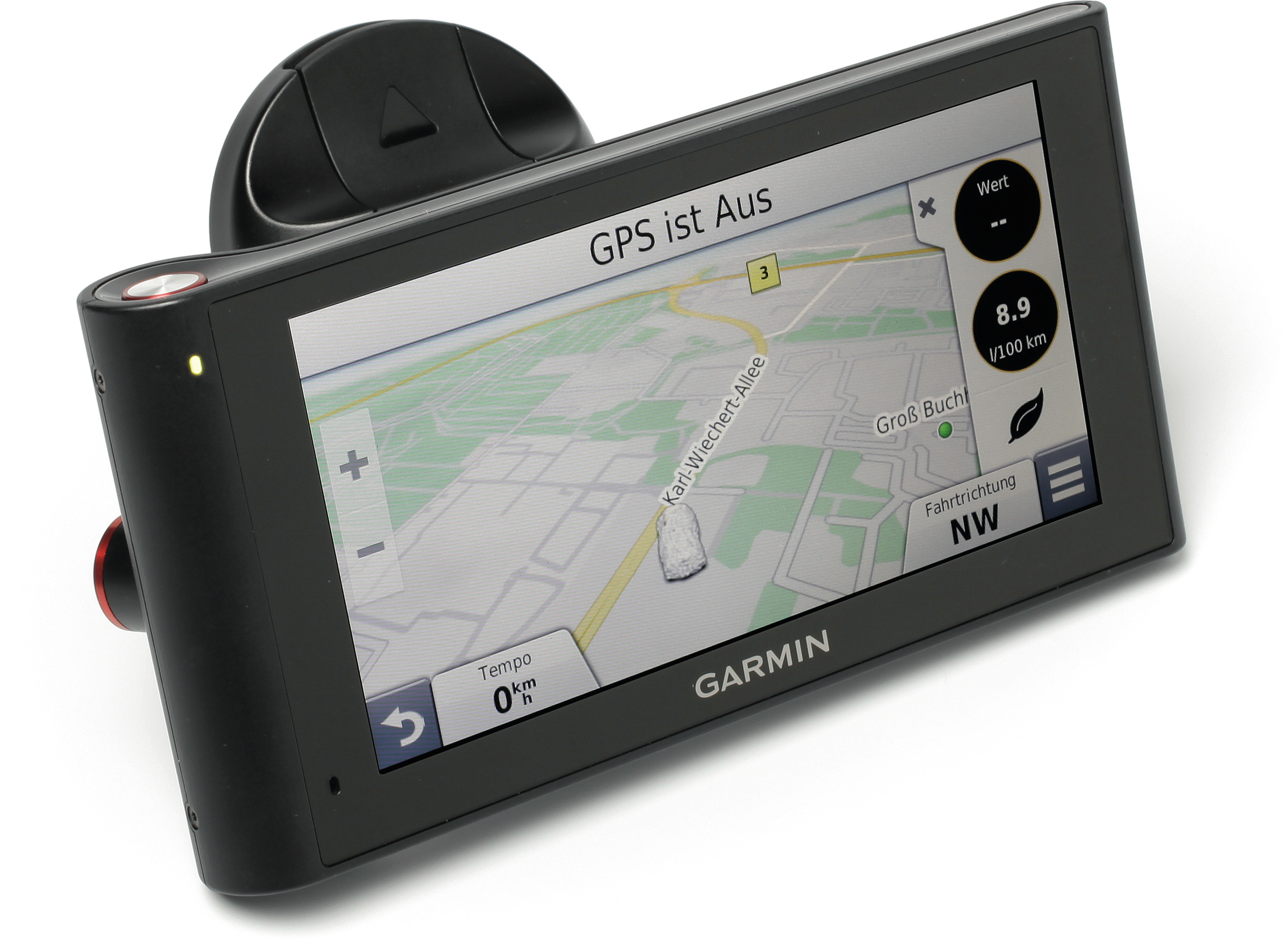 Das nüviCam von Garmin ist ein ganz schönes Brett: Mit 18,5 Zentimeter Breite und einer Höhe von 7,2 Zentimeter ist es an der Windschutzscheibe nicht zu übersehen. Dafür wird man mit einem großzügigen 16:9-Display mit 14,5 Zentimeter Diagonale belohnt, dessen WVGA-Auflösung allerdings recht grob ist. In einem seitlichen Wulst hat Garmin eine schwenkbare Full-HD-Kamera untergebracht.