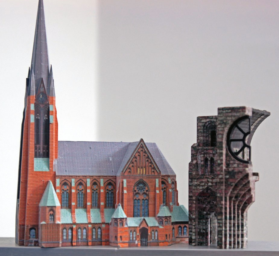 Dreidimensionale Druckgebilde bestehen üblicherweise aus thermoplastischen Kunststoffen wie ABS oder PLA. Anders bei der irischen Firma Mcor: Sie schichtet gewöhnliches Schreibpapier übereinander und erzeugt daraus farbige 3D-Objekte. Zunächst wird das Papier mit einem Tintenstrahldrucker farbig bedruckt. Danach trägt Mcor flüssigen Leim in Form des Objekts auf ein Papier auf, druckt das nächste drauf und schneidet mit einem Messer den unverklebten Teil des Blatts entlang der Modellkontur ab. Optional kann man das Werkstück zum Abschluss in Kunstharz tränken, um dem Druck eine seidenglänzende Oberfläche zu verleihen.