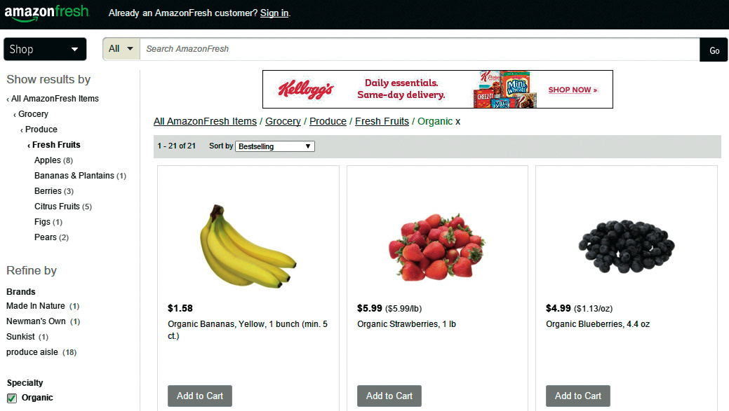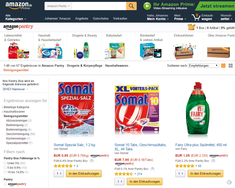 Mehr als eine Million Produkte stehen für die Lieferung am selben Tag bereit: Beliebte Elektronikartikel, Spielzeug, Bücher, Videospiele, Haushalts- und Küchengeräte, Drogerieartikel und vieles mehr. Ab einem Mindestbestellwert von 20 Euro bezahlt der Kunde für die schnelle Zustellung keinen Cent.