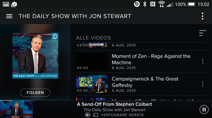 Wer Musikvideos erwartet hat, wird enttäuscht: Ähnlich wie schon bei Deezer findet man unter „Shows“ in zehn Kategorien wie Lifestyle, Technik & Gaming oder Wissenschaft & Natur ein Potpourri aus Videoschnipseln von rund 200 bekannten Podcasts: Neben zahlreichen Beiträgen vom YouTube-Vermarkter Mediakraft gibt es beispielsweise Nachrichten (Tagesschau in 100 Sekunden, BBC News), Ausschnitte aus der Daily Show und von Top Gear sowie Promi-News. Wie es sich für Podcasts gehört, können die Anwender in der Regel zwischen Audio- und Videoshows wählen. (vza@ct.de)
