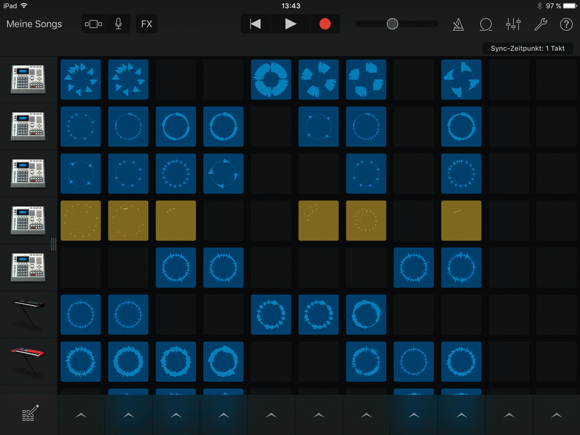 Garage Band 2.1 unterstützt die Bildschirmauflösung des iPad Pro und macht Gebrauch von der Leistungsfähigkeit aktueller Modelle. So steht für das iPhone 6(s) ein Multitouch-Keyboard mit polyphonem Aftertouch zur Verfügung, und auf 64-bittigen iOS-Geräten (ab iPhone 5s, iPad Air, iPad mini 2) lassen sich 32 Spuren gleichzeitig aufnehmen.