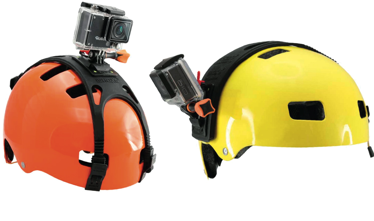 Schluss mit Gaffer-Tape: Rolleis Helmhalterungen sollen Action-Cams sicher an verschiedenartigen Helmen befestigen.