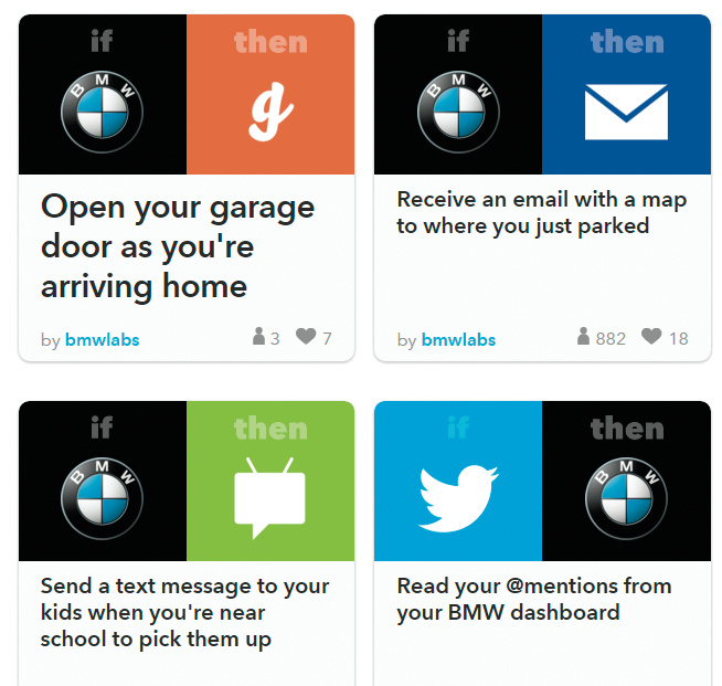 BMW arbeitet mit dem Automatisierungsdienst IFTTT zusammen, mit dem sich über einfache Regeln zahlreiche Web-Dienste und Gegenstände des Internet of Things automatisieren und fernsteuern lassen – jetzt auch das smarte Auto.