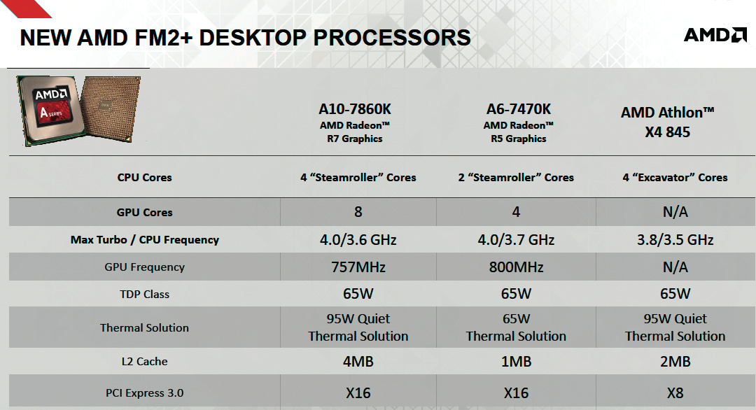 Gegen Ende 2016 soll nicht nur Summit Ridge für die FX-Linie erscheinen, sondern auch die ersten Zen-Prozessoren für Server. Bis dahin sollen ein paar Geistererscheinungen helfen, so wie die nahezu geräuschlosen Wraith Cooler. Die werden jetzt zusammen mit einigen ausgesuchten Prozessoren etwa als FX 8370 Wraith auf den Markt gebracht. Hinzu kommen auch drei neue Prozessoren, der A10-7860K (Godavari), der A6-7470K und der Athlon X4 845 (Carrizo) für 70 Dollar, der erste Desktop-Prozessor, der mit vier Excavator-Kernen aufwartet.