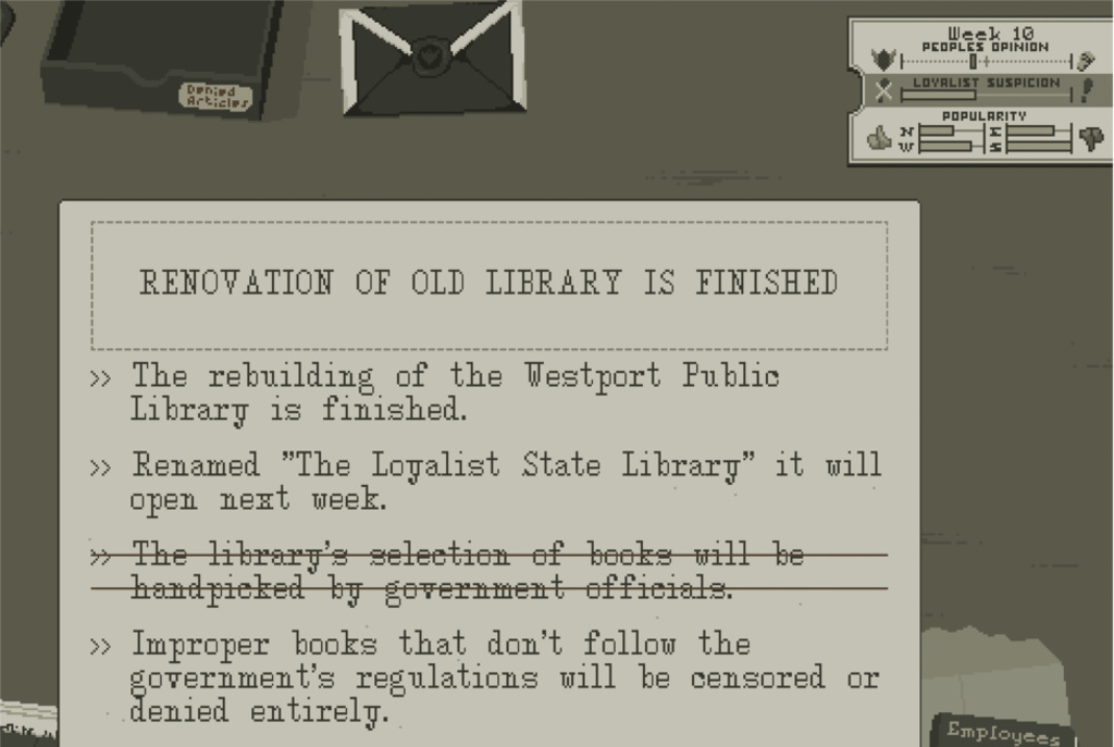In mancherlei Hinsicht ähnelt das Spiel des schwedischen Studios Double Zero One dem 2013 erschienenen „Papers, Please“ von Lucas Pope: reduzierte Grafik, simples Management mit weitreichenden Folgen, das Handeln gewöhnlicher Menschen im Griff einer Ideologie.