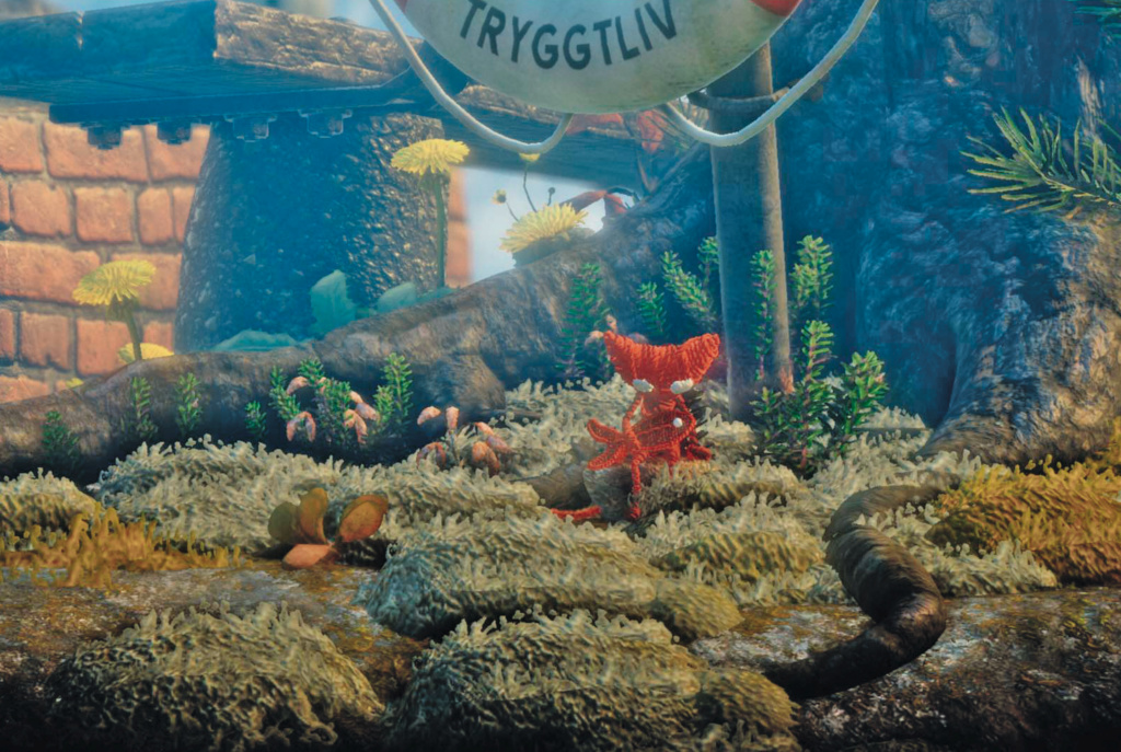 Im Knobel-Geschicklichkeitsspiel Unravel steuert der Spieler den Dreikäsehoch Yarny, der aus rotem Strickgarn besteht. Yarny erkundet bezaubernde Landschaften, um Erinnerungsbilder und Deko-Objekte zu sammeln.