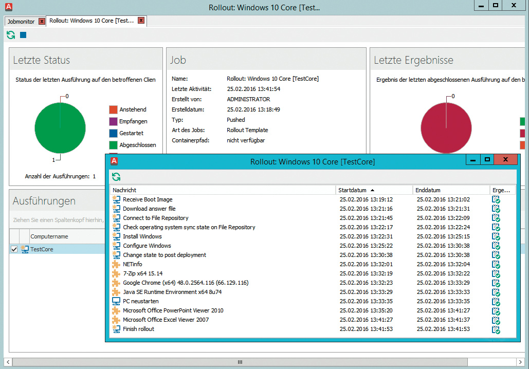 Aagon zeigt die brandneue Version 5.1 seiner Asset-Management-Suite ACMP. Mit „Assets“ sind alle Anlagegüter gemeint, die zu einem Arbeitsplatz gehören, in der Lesart von Aagon nicht nur PCs, Monitore und Büromöbel, sondern auch Software-Installationen und -Lizenzen. ACMP besteht aus Modulen für Inventarisierung, Lizenz-Management, Software- und Betriebssystemverteilung sowie Mobile Device Management. Mit der Suite lassen sich Programme, die man in einen zentralen Ressourcen-Pool heruntergeladen hat, mit maßgeschneiderten Installationsskripten ergänzen. Danach können Benutzer diese Anwendungen vom Arbeitsplatz aus mit einem Mausklick einrichten. Im Hintergrund hält die Aagon-Software dabei ein Auge auf insgesamt verfügbare und noch nicht ausgeschöpfte Lizenzen. Auf dem Messestand demonstriert der Hersteller insbesondere, wie sich Wartungsaufgaben, etwa das Aufspielen von Patches, mit ACMP automatisieren lassen. (hps@ct.de)