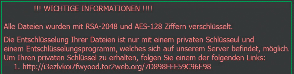 Der erste dokumentierte Verschlüsselungs-Trojaner namens AIDS tauchte im Jahr 1989 auf und infizierte Computer über eine präparierte Diskette. Der Schädling verschlüsselte nach dem neunzigsten Bootvorgang alle Daten auf der Systemfestplatte und machte den Computer damit unbenutzbar. Opfer wurden aufgefordert, rund 170 Euro an ein Postschließfach in Panama zu schicken. An diesem Konzept haben sich seitdem nur Kleinigkeiten geändert: Aus dem Postfach sind Bitcoins geworden und durch stetige Weiterentwicklung wird jede Malware-Generation heimtückischer als ihre Vorgängerin.