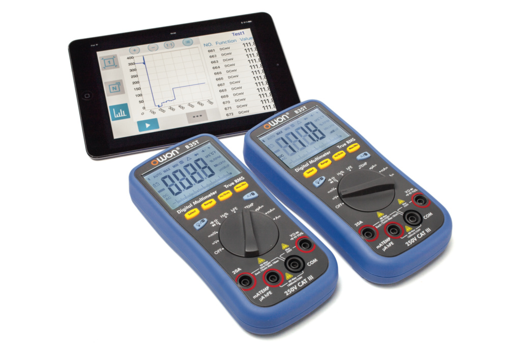 Universal-Messgeräte übertragen Messwerte meist drahtgebunden per USB oder sogar noch RS-232 zum PC. Deutlich zeitgemäßer ist die Übertragung per Bluetooth wie beim Owon B35T. Dabei ist das Gerät noch ausgesprochen preiswert.