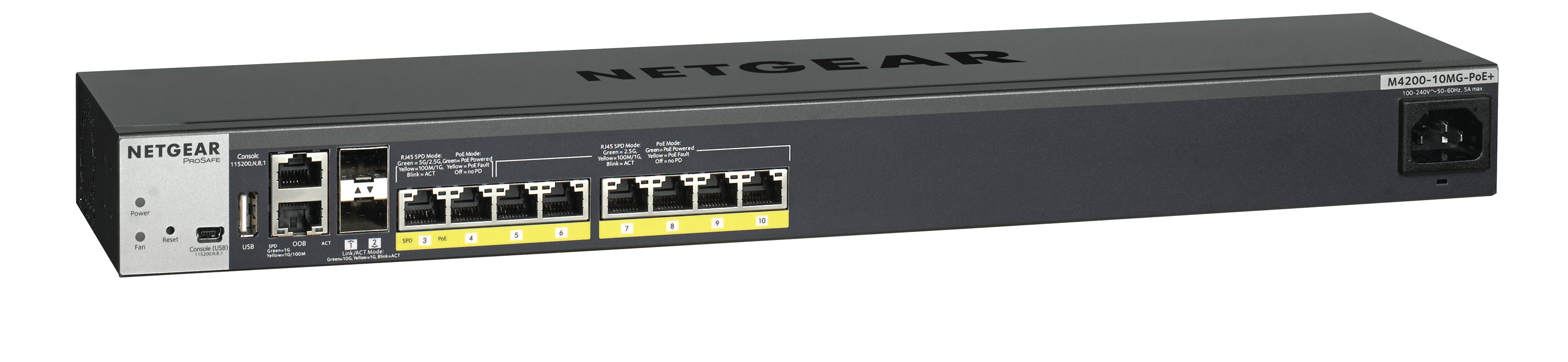 Eigentlich wollte Netgear seinen neuen Switch M4200-10MG-PoE+ erst Ende März vorstellen. Zu sehen gab es das wegweisende Gerät dann doch schon auf der CeBIT-Messe Mitte März. Bemerkenswert daran ist, dass es als erster Switch überhaupt über einzelne Ethernet-Kupferkabel Geschwindigkeiten oberhalb von 1 GBit/s erreicht. Auf sechs Ethernet-Ports befördert es bis zu 2,5 GBit/s, auf zwei weiteren kommt es auf maximal 5 GBit/s.