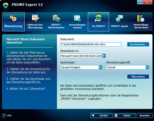 Eine Sprache lässt sich nicht allein dadurch beherrschen, dass man das Wörterbuch auswendig lernt: Grammatische Zusammenhänge müssen erkannt, Idiome und Satzstrukturen verstanden werden. Das Programm Promt Expert 12 will dabei zumindest bei geschriebenen Texten helfen.