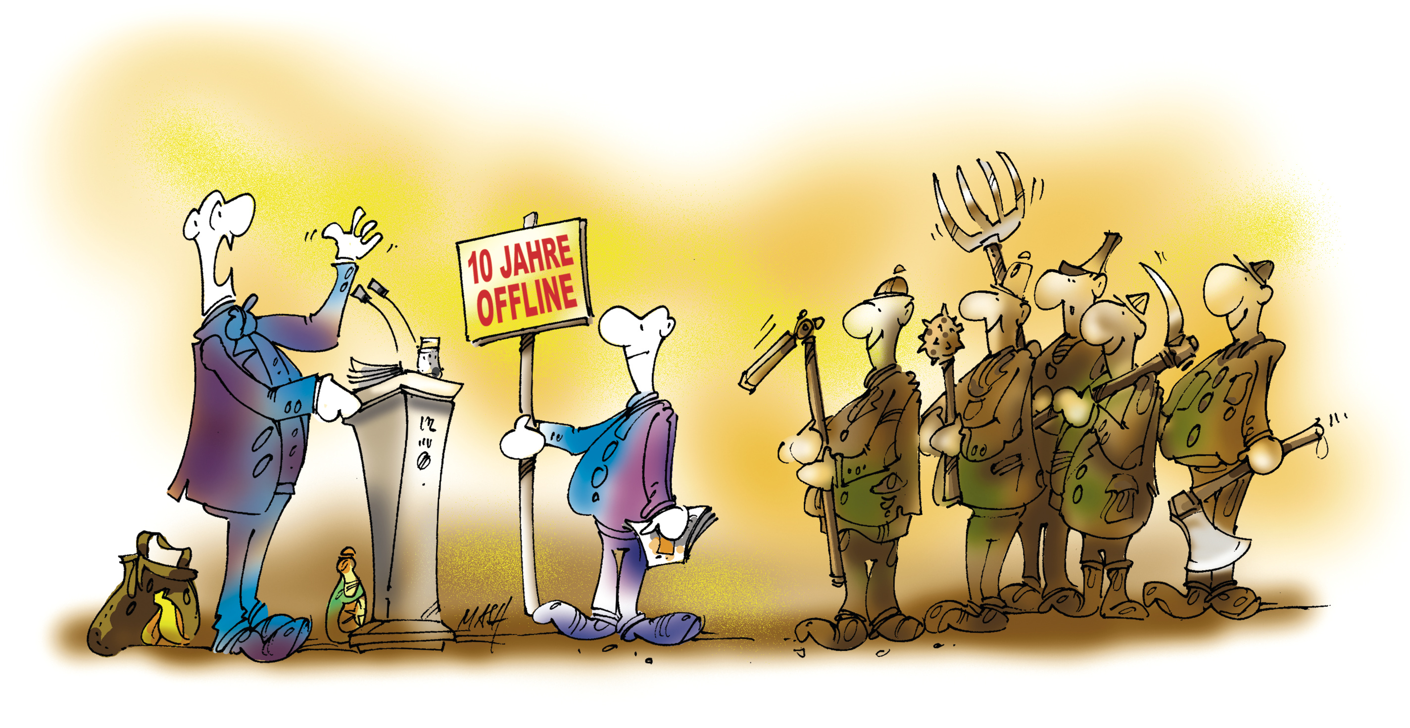 Ich denke, Sie stimmen mir zu, wenn ich sage, dass das Internet-Verbot für ein besseres Deutschland gesorgt hat. Die Bundesbürger sind glücklicher und zufriedener als je zuvor. Wir hier beim Ministerium hören jedenfalls keine Klagen.