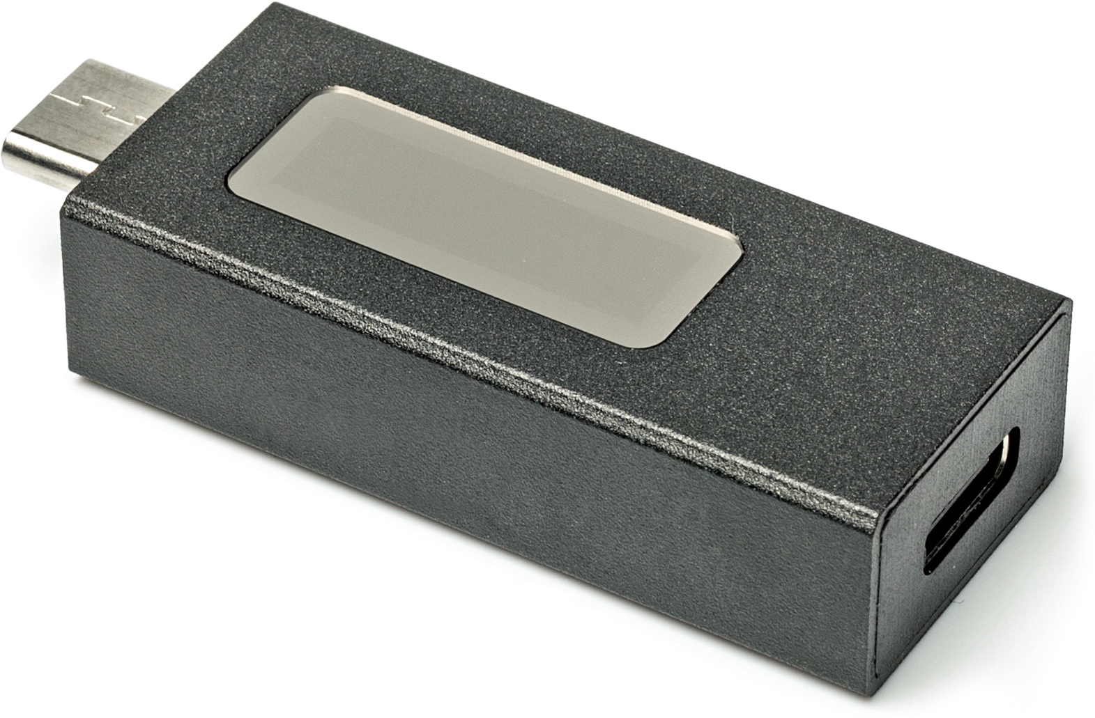 Bereits in der vergangenen c’t-Ausgabe (c’t 9/17, S. 90) haben wir Testadapter zur Leistungsmessung bei USB-C-Verbindungen vorgestellt. Der Nachzügler von Plugable ist wie die Adapter von Delock und Satechi eigenständig: Man steckt ihn zwischen zwei Geräte mit USB-C, woraufhin er bootet und die Messwerte von Strom und Spannung auf einem monochromen OLED-Display anzeigt.