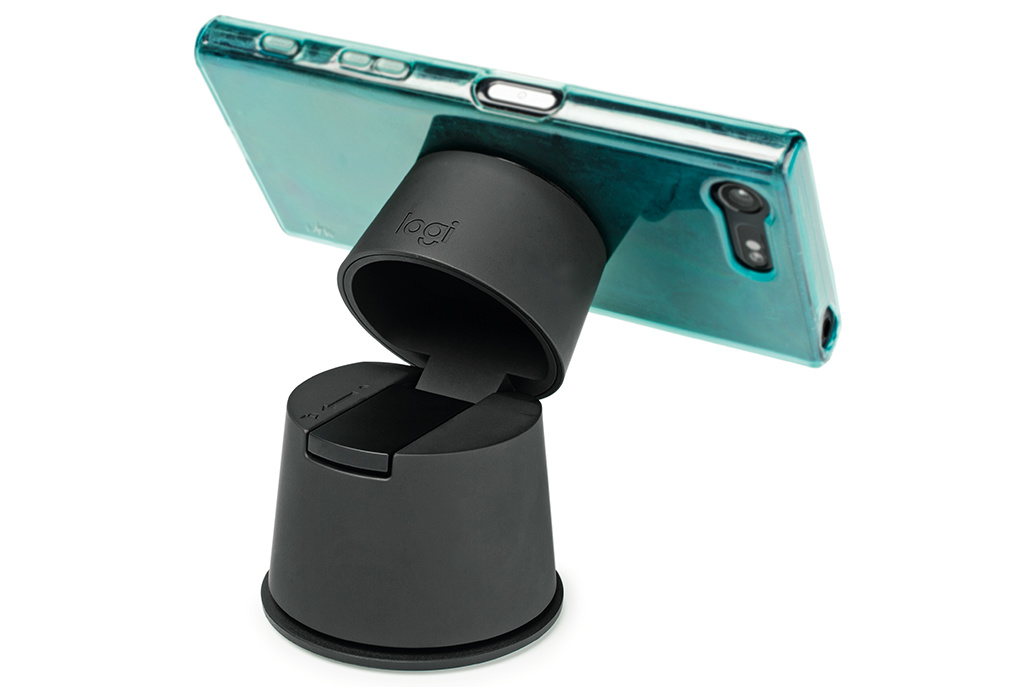Logitechs Handy-Halterung mit Alexa-Support gibt es in zwei Ausführungen: Den „ZeroTouch Windschutzscheibe“ bappt man an die Scheibe, der High-Tech-Saugnapf hält aber auch problemlos auf der strukturierten Kunststoffoberfläche eines Armaturenbretts. Er sieht deutlich eleganter aus als die üblichen Saugnapfhalterungen. Über einen Klappmechanismus lässt sich die Neigung des Handys optimal einstellen. Den „ZeroTouch Lüftung“ (nicht im Bild) klemmt man zwischen die Lamellen des Lüftungsgitters.