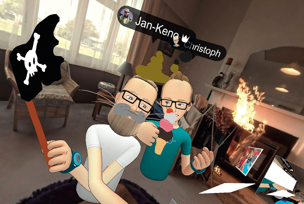 Teilnehmer können den Raum ändern, sich gegenseitig mit virtuellen Objekten dekorieren, Selfies machen, gemeinsam Musik aus einer virtuellen Boombox hören oder sich gegenseitig Fotos zeigen. In unseren ersten Tests lief das teilweise noch etwas hakelig ab – offenbarte aber auch enormes Potenzial. Denkbar wären etwa so auch virtuelle Konferenzen im Business-Umfeld.