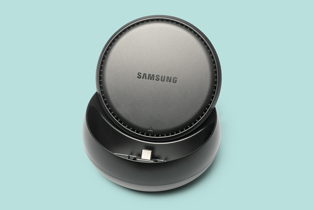 Mithilfe der Samsung DeX Station sollen die Smartphones Galaxy S8 und S8+ den Desktop-PC ersetzen. Die Dockingstation koppelt sich per USB-C mit dem Telefon, schickt es in einen speziellen Desktop-Modus und verbindet es mit Monitor, Maus, Tastatur und Netzwerk. Dabei hat der Nutzer Zugriff auf fast alle Apps und Daten des Mobilgeräts.