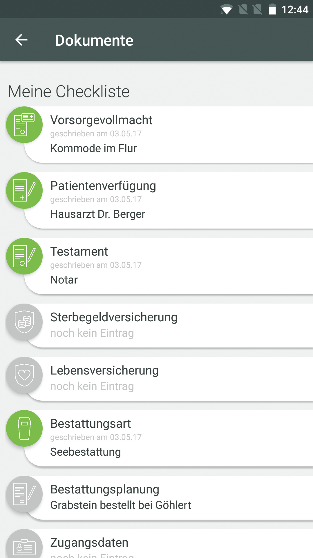 Die App LifeCompanion sammelt Passwörter sowie Aufbewahrungsorte wichtiger Dokumente und nimmt Wünsche für die eigene Beerdigung entgegen.