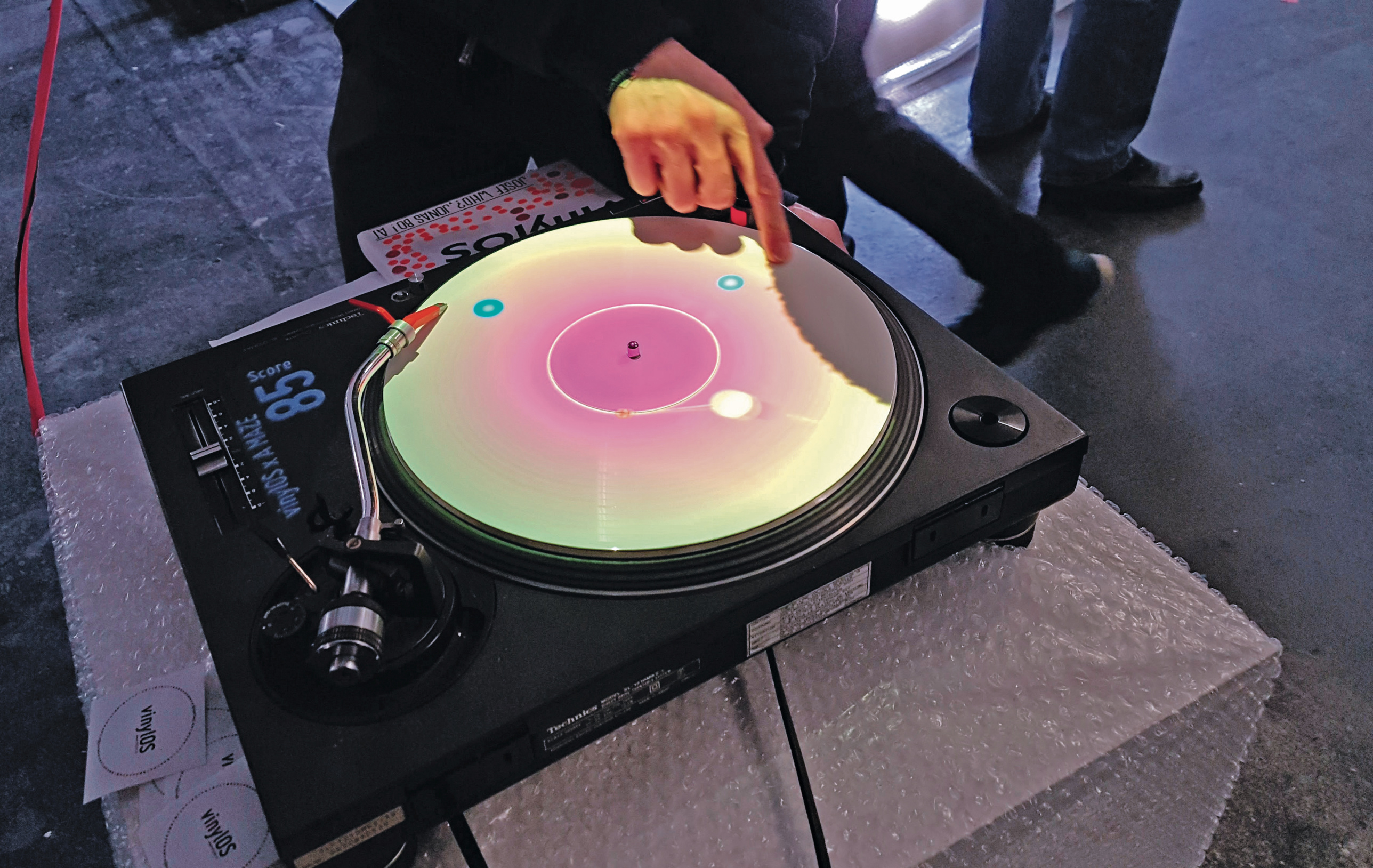 Ein gutes Beispiel dafür ist VinylOS der österreichischen Entwickler Josef Who und Jonas Bo: Dieses Spiel findet auf einer Schallplatte statt, die sich auf einem Plattenspieler dreht. Die Scheibe dient aber nicht nur als Spielfläche, sondern auch als Controller. Wie ein DJ muss man die Platte beschleunigen und verlangsamen, um ein Raumschiff à la Asteroids zu steuern. Die über 5000 Besucher waren begeistert – und vergaben an VinylOS den Publikumspreis.