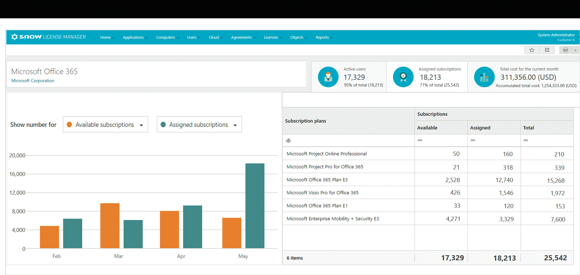 Der Dienst „Snow for Office 365“ dient zur Verwaltung und Lizenzierung von Office-365-Anwendungen. Laut Anbieter Snow integriert er sich unabhängig von der Client-Plattform vollständig in Microsofts Miet-Office. Einerseits soll der Dienst mit Selbstbedienungsportalen und durch die Automatisierung von Abläufen Admin-Zeit einsparen und andererseits soll er Lizenzkosten verringern, indem er Betrieben hilft, ungenutzte Lizenzen zu kündigen und Benutzer bei Gelegenheit in günstigere Lizenzpläne einzugruppieren. (hps@ct.de)