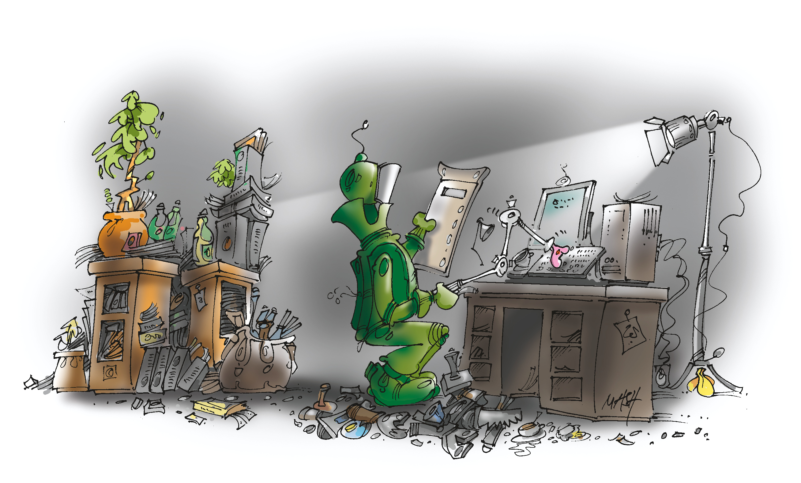 Zögerlich öffnete ich das PDF. Auf dem Bildschirm erschien der graue Scan eines Zeitungsausschnitts mit einer derben Karikatur des US-amerikanischen Noch-Präsidenten. Um 90 Grad verdreht.
