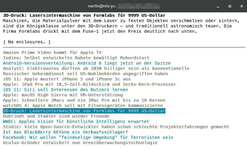 Canto ist ein Feedreader für die Linux-Kommandozeile, der sich mit Plug-ins erweitern lässt.