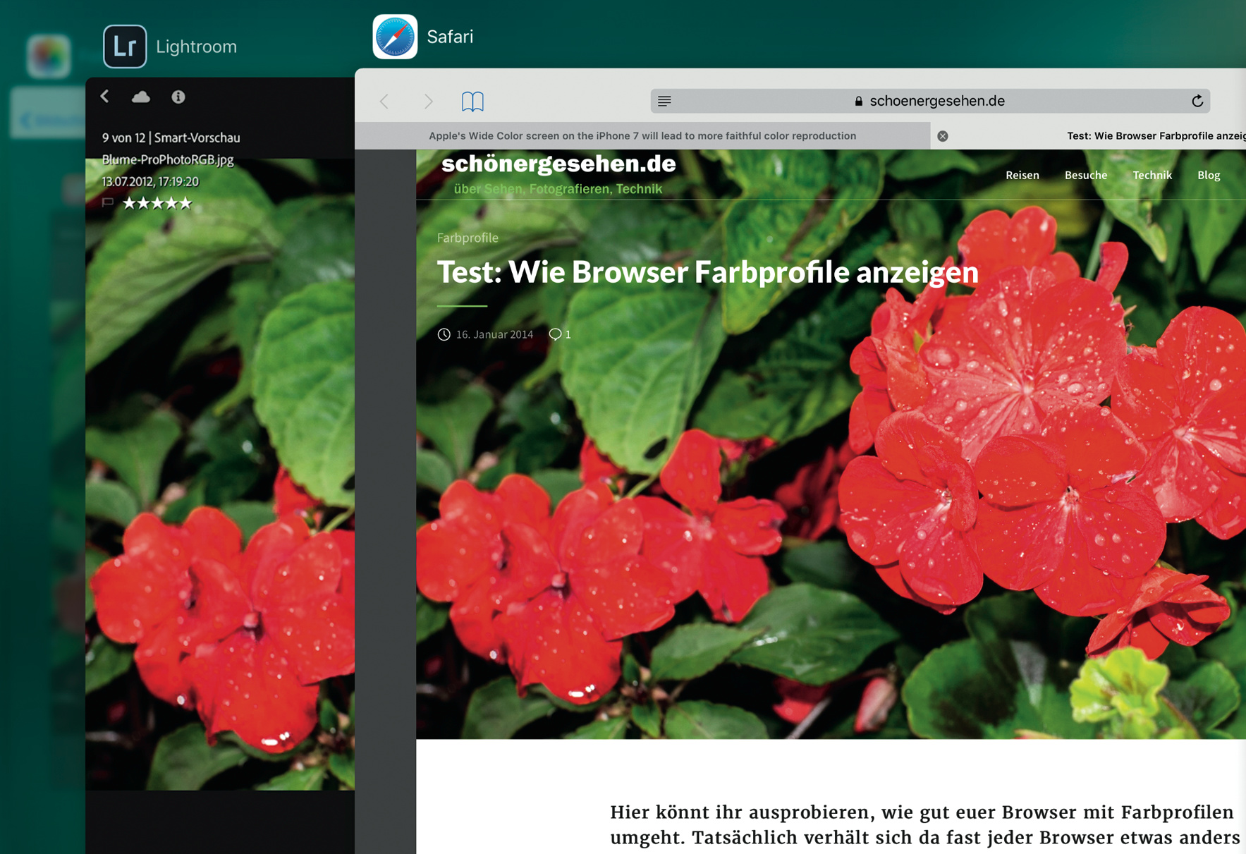 Endlich lernen auch die Browser von Smartphones und Tablets, mit Farbprofilen in Fotos umzugehen. Das macht es Fotografen leichter, ihre Bilder so zu exportieren, dass auch Anwender von farbkräftigen Monitoren und Mobilgeräten profitieren.