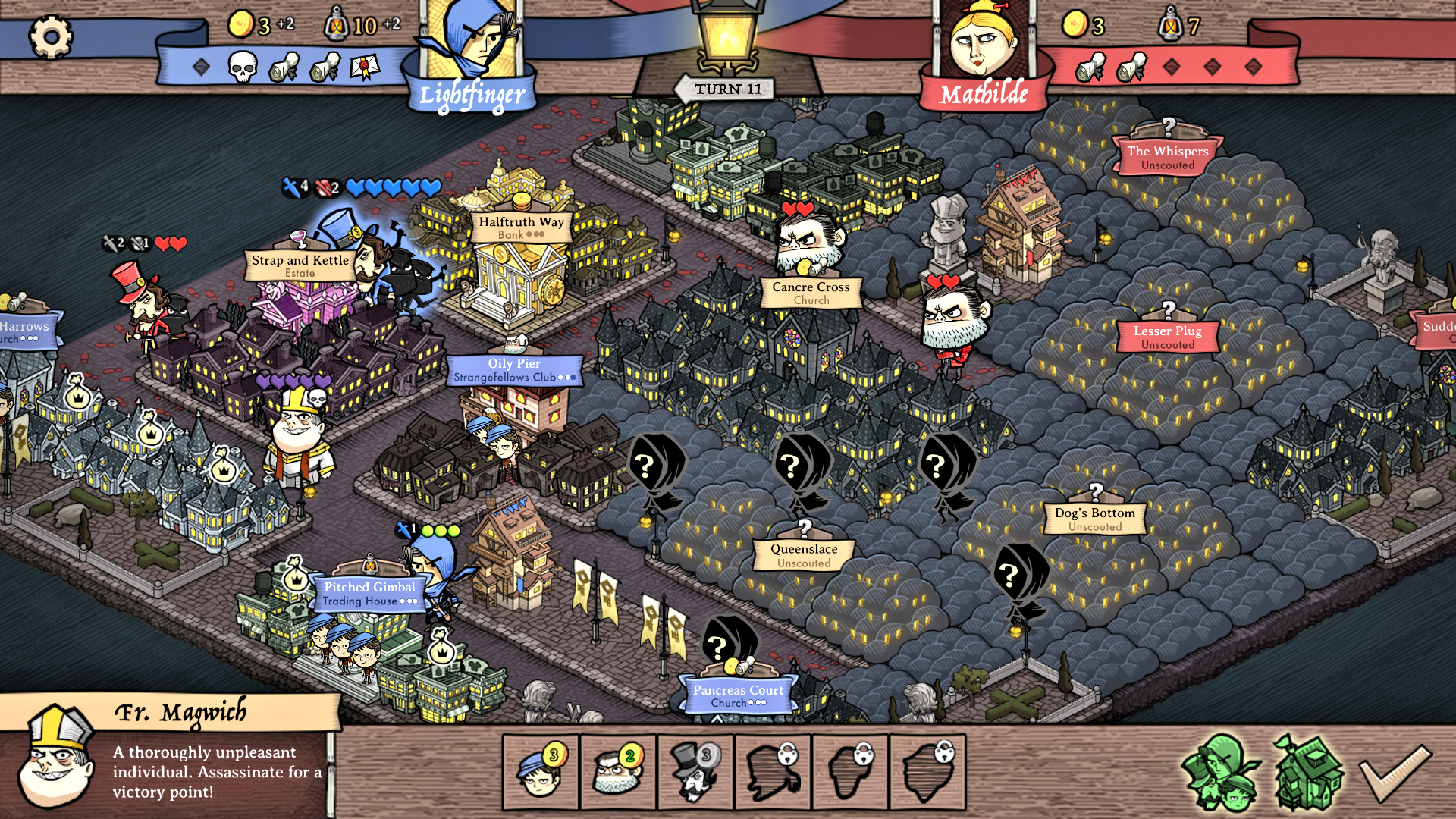 Das boshafte Strategiespiel des texanischen Studios Versus Evil zeigt einen Gegensatz, der nicht krasser sein könnte: Einer ulkig-cartoonig-sympathischen Darstellung steht eine extrem unmoralische Spielhandlung gegenüber. Korrupte Amtsträger, arrogante Adlige und gnadenlose Gangster beherrschen das Stadtbild. Als viktorianischer Meisterdieb baut man rundenweise ein kriminelles Imperium auf – im Wettstreit mit dem Computer oder online gegen einen menschlichen Kontrahenten.