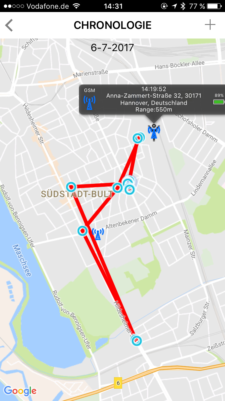 Auf den ersten Blick sieht der Nilox Bodyguard aus wie eine gewöhnliche Digitaluhr. Tatsächlich ist es ein Tracker mit integriertem Mobilfunk-Modul für 2G-Verbindungen, über den sich Personen, Tiere oder Objekte orten lassen. Die zweite Komponente ist die kostenlose Bodyguard-App für Android- oder iOS-Mobilgeräte. Dort legt man ein Konto an und verknüpft dieses mit der eigenen Mobilfunknummer.