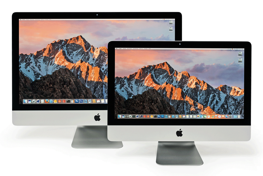 Designexperimente hat Apple bei seinen All-in-One-PCs nicht gewagt – die Anfang Juni auf der Entwicklerkonferenz WWDC vorgestellten iMacs stecken im bekannten Aluminium-Gehäuse. Bei den Schnittstellen sowie der Hardware unter der Haube gibt es hingegen einige Neuerungen, die zum Teil überfällig waren: An die beiden Typ-C-Buchsen lassen sich dank Thunderbolt 3 DisplayPort-Monitore sowie schnelle Peripheriegeräte über USB 3.1 Gen 2 oder Thunderbolt 3 anschließen. In allen iMacs arbeiten nun Core-i-7000-Prozessoren, die 21,5-Zöller überspringen somit eine Chipgeneration.