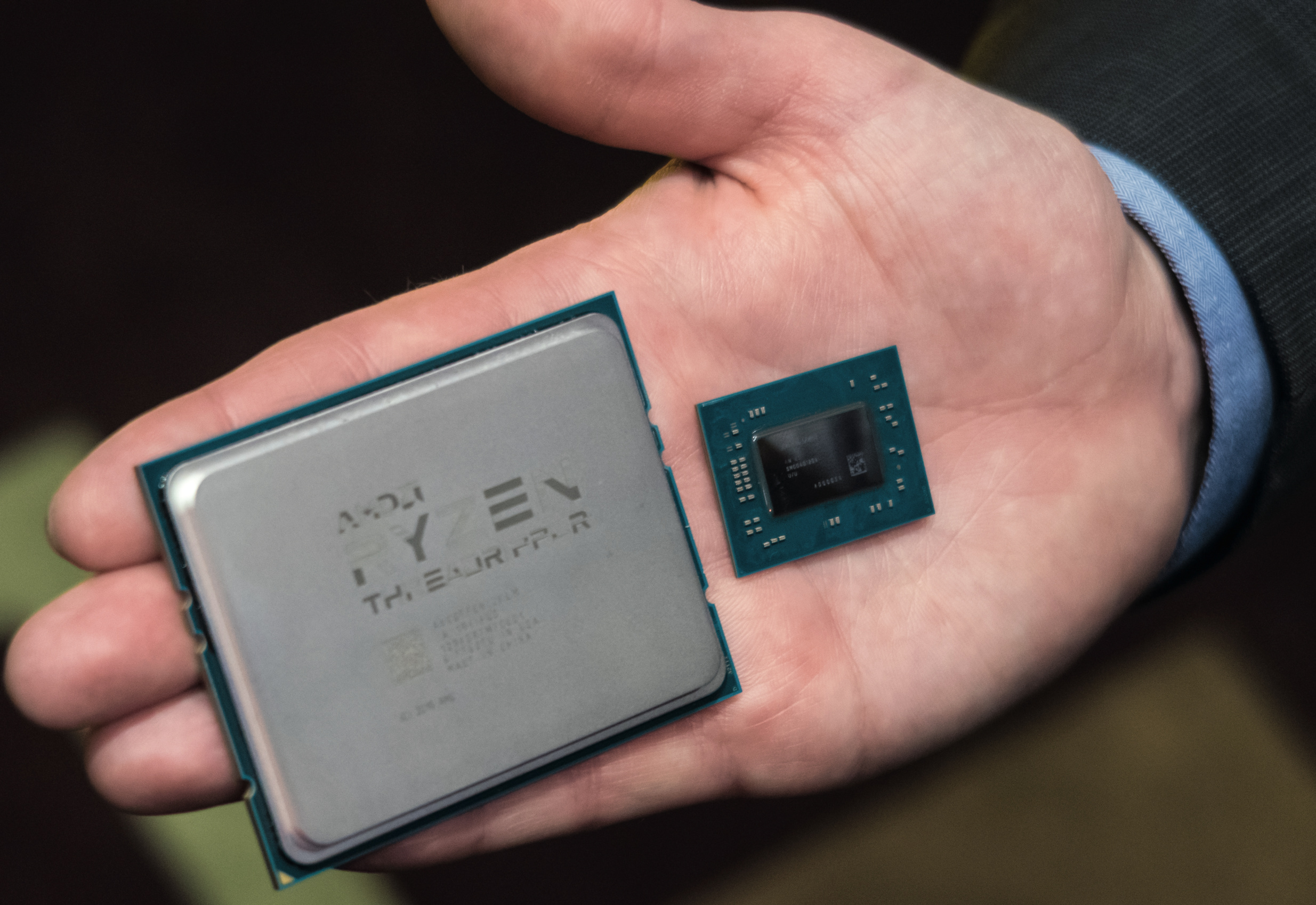 Nach AMD-Messungen liegt der Ryzen Threadripper 1920X im Cinebench R15 gleichauf mit dem 1000 Euro teuren Intel-Zehnkernprozessor Core i9-7900X (20 Threads). Demnach schafft der 1920X im Cinebench R15 2431 Punkte, der Core i9-7900X 2167 Punkte. Der mit 1000 US-Dollar ähnlich teure AMD-Prozessor 1950X errechnet in der AMD-Vorführung 3062 Punkte, ist im Cinebench R15 also gut 40 Prozent schneller.