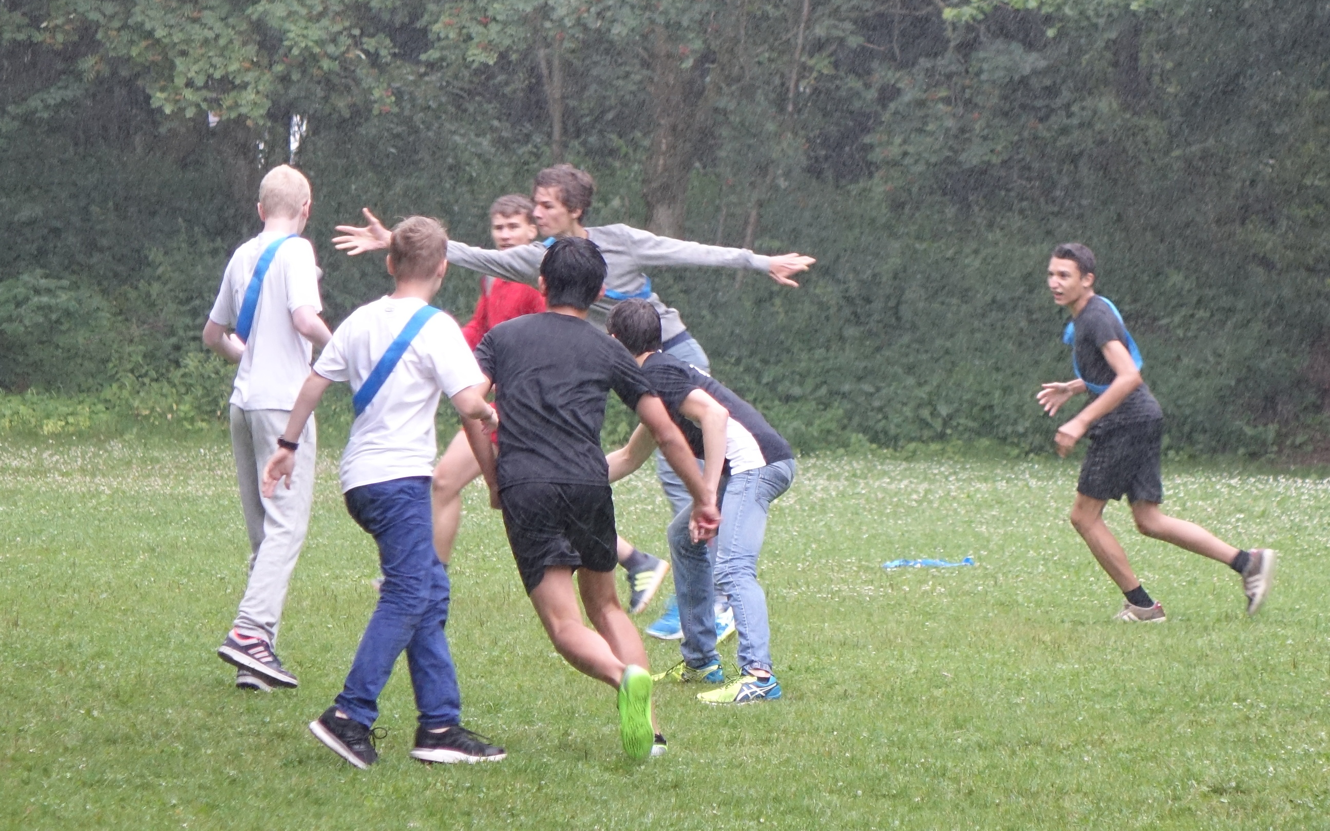 Fang“, ruft einer der Teilnehmer. Mit einem gewaltigen Sprung fängt sein Gegenüber das Frisbee trotz strömenden Regens. „Während eine Hälfte der Teilnehmer in kleinen Gruppen Computerkurse besucht, bieten wir für die andere Hälfte parallel verschiedene Freizeitaktivitäten an“, sagt Christian Gerstgrasser, Geschäftsführer des ComputerCamp für Kinder und Jugendliche von 10 bis 17 Jahren in Hohegeiß im Harz.