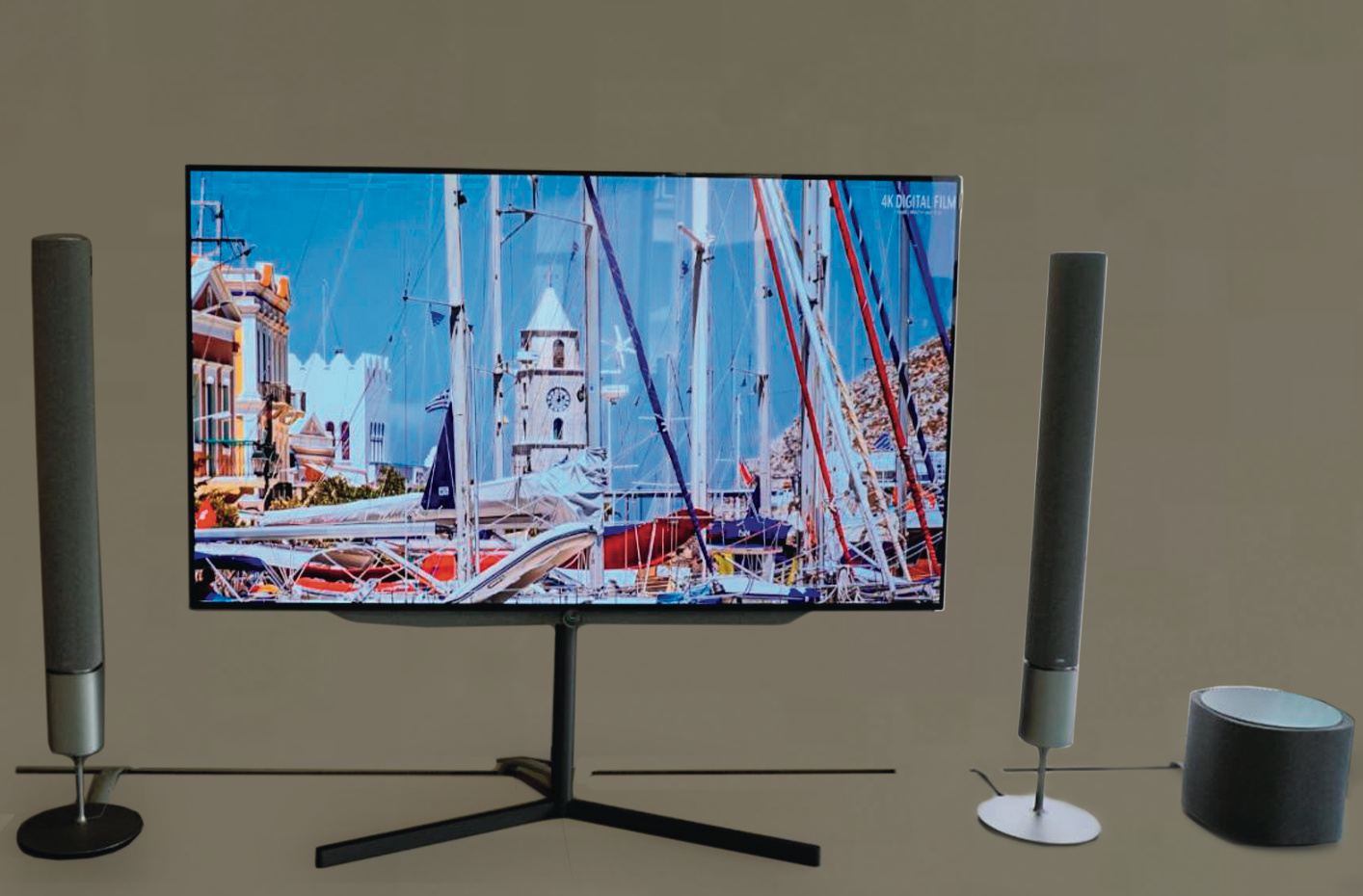 Bei Loewe setzt man schon lange auf schickes Outfit. Der aktuelle OLED-Fernseher bild 7 ist sehr schmal eingefasst und ruht auf einem elektrisch drehbaren Fuß. Sein Rücken ist mit Stoff bezogen, den man leicht entfernen kann, um an die Anschlüsse zu gelangen. Der bild 7 unterstützt HDR 10 und Dolby Vision, das Soundsystem allerdings kein Dolby Atmos. Auch auf eine Sprachsteuerung muss man bei Loewe verzichten – sie werde von den Kunden bisher nicht angenommen, erklärte der Hersteller. Dafür ist im Gerät eine 1 Terabyte große Festplatte eingebaut, auf die man auch von anderen Loewe-TVs zugreifen kann. Der bild 7 mit 77 Zoll Diagonale kostet 15.000 Euro.