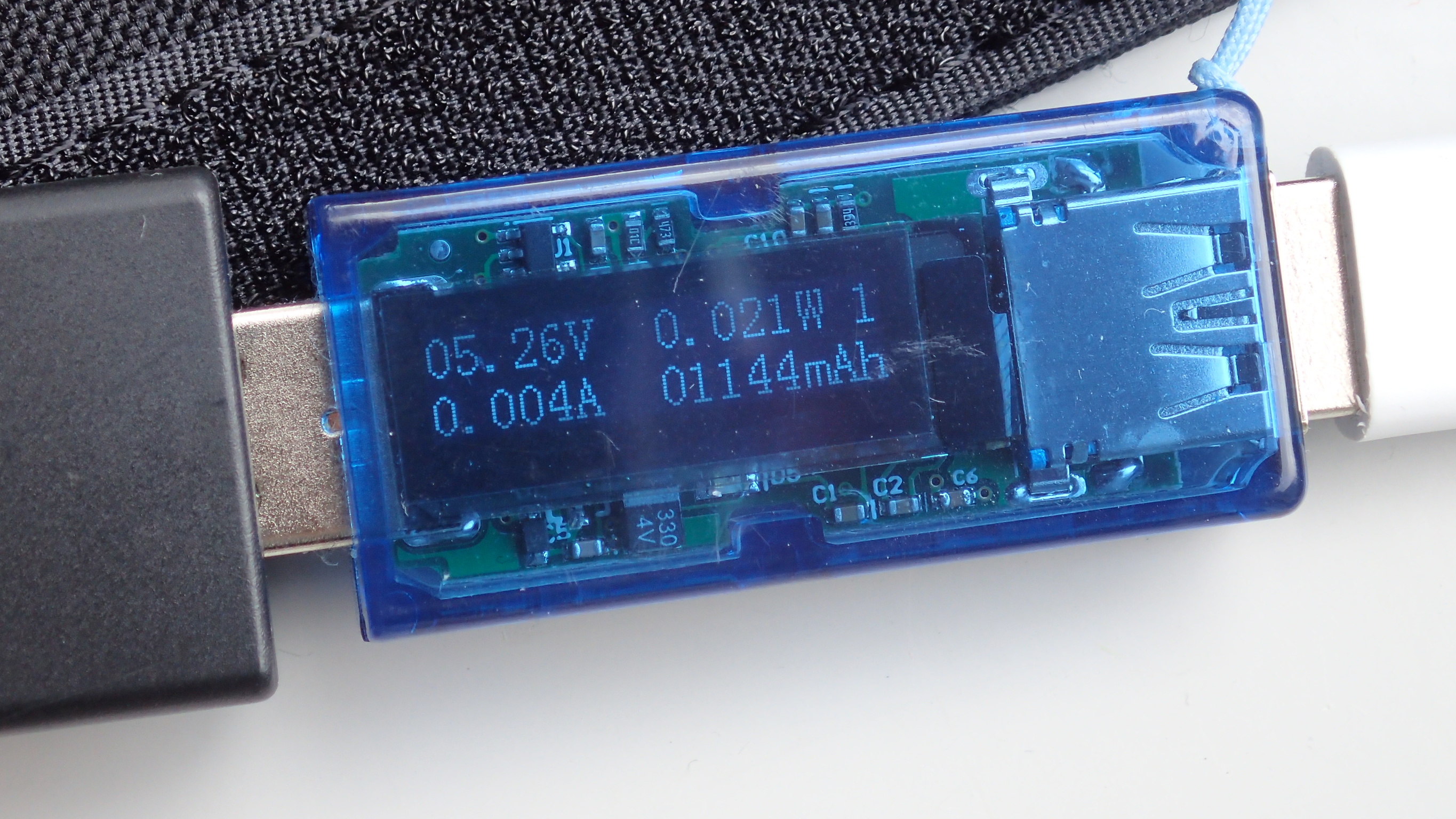 Das ist erwünscht, solange ein Smartphone am Panel hängt. Doch im Zusammenspiel mit einer Powerbank führt das schnelle Abschalten dazu, dass der Anteil, der unterhalb 4,75 Volt produziert wird, verloren geht. Die Ladestromregelung in der Powerbank begrenzt bei Annäherung an die Ladesschlussspannung ebenfalls den abgenommenen Strom, teilweise auf drei Prozent des anfänglichen Wertes, also knappe 50 Milliampere. Einige Panels schalten bei sehr geringen Strömen auch den USB-Ausgang ab, was die Ernte ebenfalls etwas schmälert.