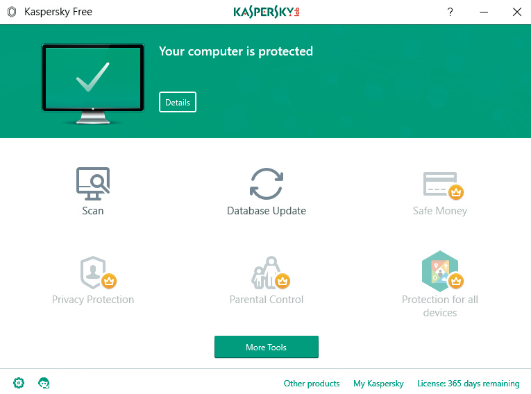Im Vergleich zu Kaspersky Anti-Virus, dem günstigsten Bezahlprodukt des Anbieters, ist der Funktionsumfang eingeschränkt und konzentriert sich aufs Wesentliche – den Schutz vor Malware. Zusatzfunktionen wie Software Cleaner und die Schwachstellensuche (Vulnerability Scan) sind nicht enthalten; ebenso lässt sich kein Notfall-Bootmedium erstellen. (jss@ct.de)