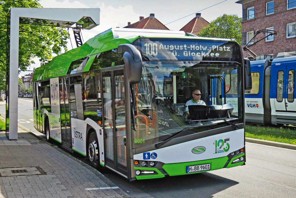 Hören Sie das? Jetzt kommt er“, sagt Andrea Schellworth. Die routinierte Busfahrerin der hannoverschen Verkehrsbetriebe Üstra steht mit ihrem Elektrobus am Endpunkt der Linie 100/200 in Hannover-Ricklingen. Eigentlich sollte die 45-Jährige nach einem kurzen Auflade-Stopp schon längst wieder unterwegs auf der nächsten 16-Kilometer-Schleife durch die niedersächsische Landeshauptstadt sein. Doch ihr Bus vom Typ „Urbino 12 electric“ mit rund 30 Sitz- und 40 Stehplätzen streikt an diesem Sonntagmittag.