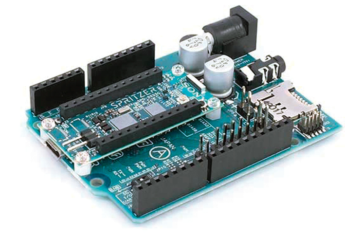 Sony will ab 2018 Arduino-kompatible Bastelboards namens Spritzer mit den Chips CXD5602GF oder CXD5602GG verkaufen. Sie enthalten Empfänger für GPS und GLONASS sowie ADC- und DAC-Wandler für 192 kHz/24 Bit. Der Zusatzchip CXD5247 enthält Audio-Verstärker und Mikrofon-Vorverstärker und lädt einen Akku. Rechenleistung besorgen sechs 32-Bit-Kerne vom Typ ARM Cortex-M4F, die mit bis zu 156 MHz takten. 8 MByte Flash sind integriert.