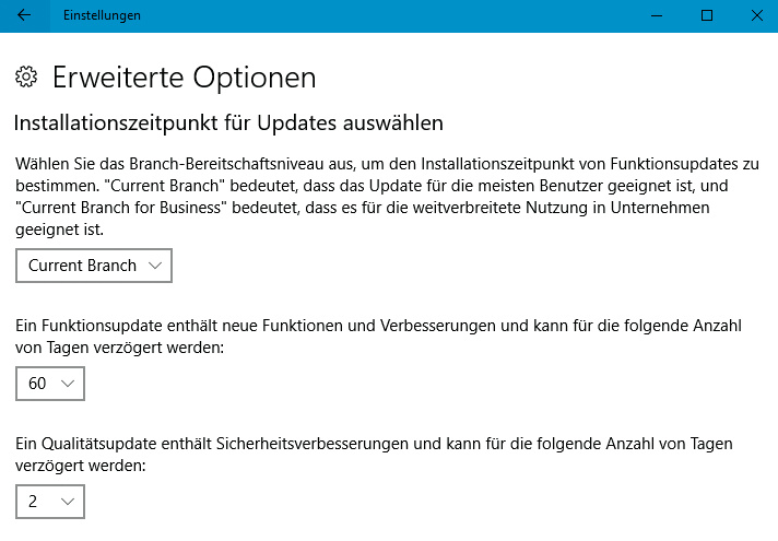Die Steuermöglichkeit für die Installation von Feature-Upgrades fällt aber nicht weg – Admins können mit „Windows Update for Business“ den Bezug von neuen Ausgaben wie bislang bis zu 365 Tage verzögern. Bei den Home-Editionen lässt sich nach wie vor keine Verzögerung einstellen. Parallel zur Abschaffung des CBB bekommen ab sofort alle kompatiblen PCs, auf denen noch das Anniversary Update läuft, das Creators Update via Windows Update. (jss@ct.de)