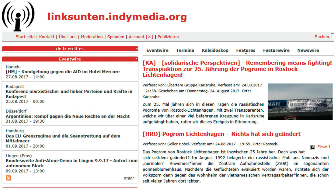 Die deutsche Plattform ist ein Ableger der linken Site Indymedia („Independent Media Center“). Der Innenminister betonte, das Verbot richte sich ausdrücklich nicht gegen dieses weltweite Netzwerk, sondern nur gegen den linksextremistischen Ableger linksunten.indymedia.org. Es gab keine Festnahmen oder Verhaftungen. Im Zusammenhang mit dem Verbot wurden allerdings Räumlichkeiten in Freiburg durchsucht. Derzeit ist linksunten.indymedia.org offline (Stand: 28. August 2017). (hob@ct.de)