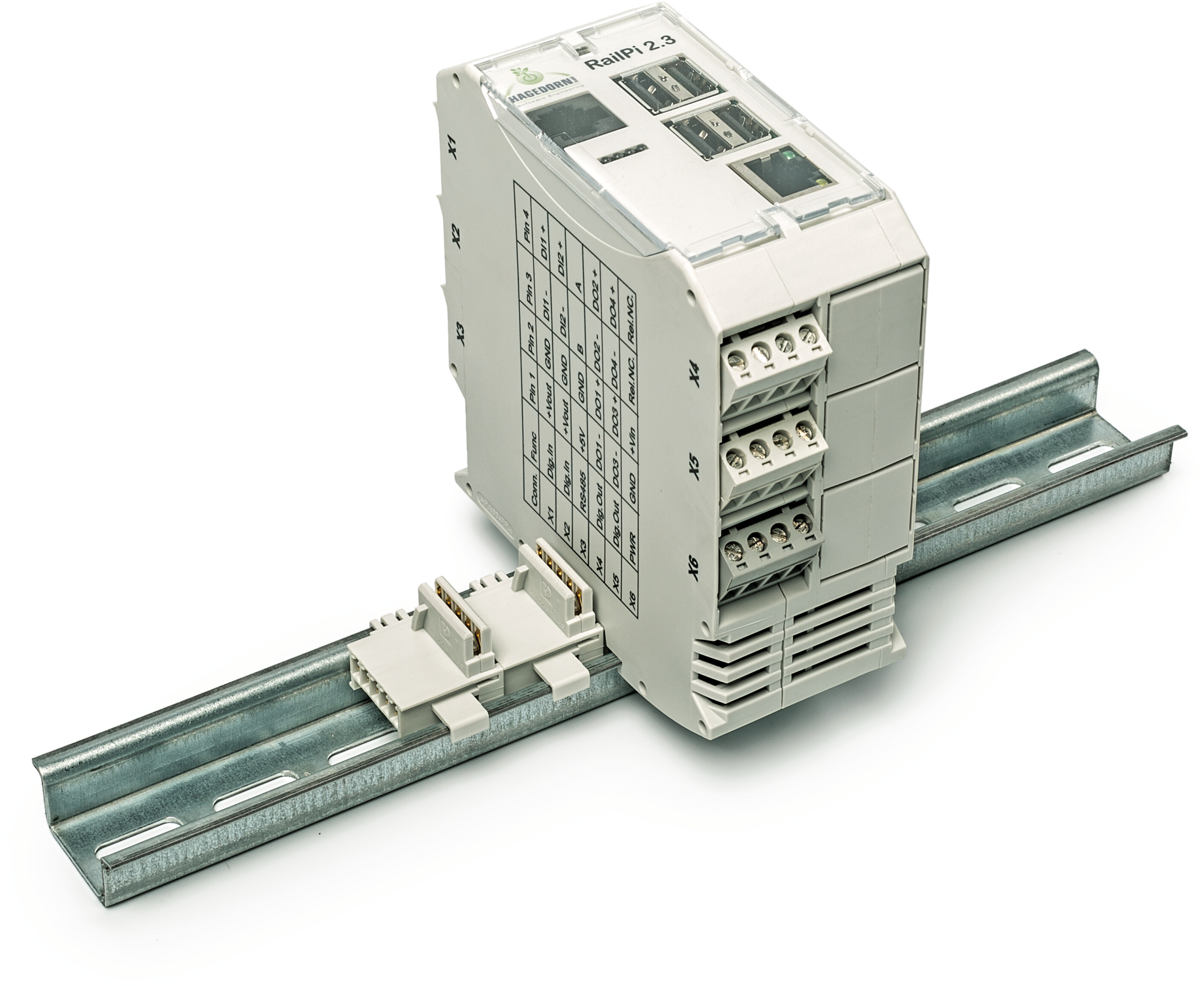 Der RailPi der Firma Hagedorn Software Engineering ist eine Kombination aus Gehäuse und Erweiterungsplatine, die den Kleincomputer Raspberry Pi auf die in Schaltschränken üblichen Hutschienen bringt. Der Fokus des RailPi liegt auf Steuerungs- und Überwachungssystemen für Industrie und Landwirtschaft. Die Erweiterungsplatine bringt hierzu vier kurzschlussfeste digitale Ausgänge mit Freilaufdioden, zwei optisch entkoppelte strombegrenzte Eingänge, eine RS-485-Schnittstelle und eine Echtzeituhr mit.