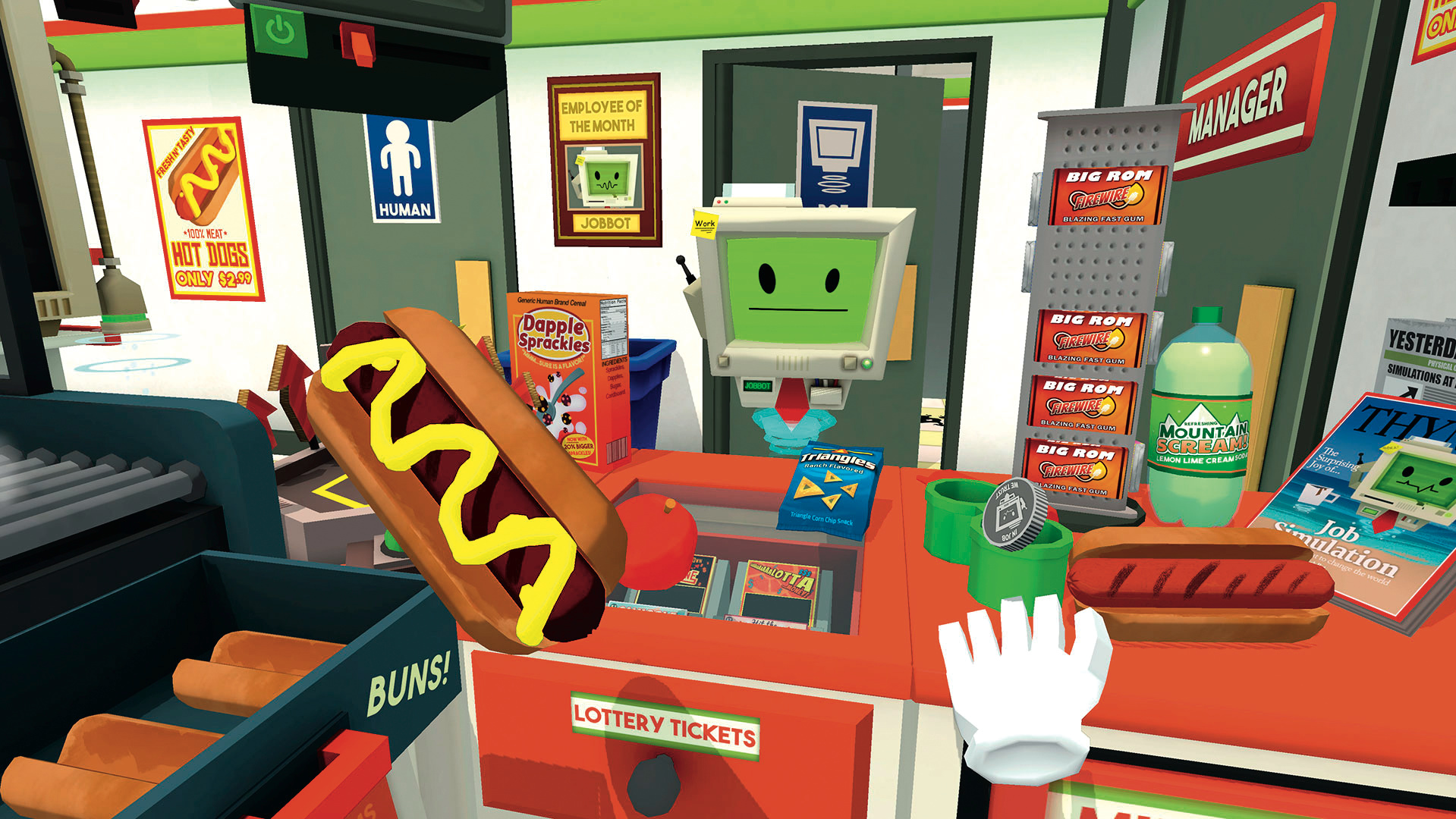 Um herauszufinden, wie sich Vive, Rift und PSVR im Detail voneinander unterscheiden, haben wir die drei Headsets direkt nebeneinander installiert. Und natürlich kommt auch überall die gleiche Software zum Einsatz: zuerst die Arbeits-Simulation Job Simulator, anschließend das Science-Fiction-Squash Holoball. Beide Titel sind für alle drei Systeme erhältlich. Die Entwickler von Job Simulator bestätigten uns, dass die drei Software-Varianten technisch nahezu identisch sind und sich deshalb für einen Hardware-Vergleich eignen. Auf allen drei Plattformen wird das Spiel mit 1,4-fachem Supersampling gerendert.