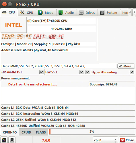 I-Nex liefert unter Linux zahlreiche nützliche Informationen über das laufende System und die zugrunde liegende Hardware.