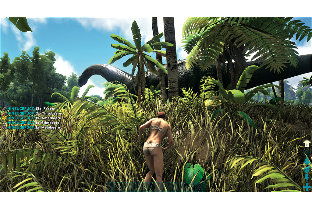Urwüchsigkeit und Naturnähe in allen Ehren – aber das, was die vom Spieler erschaffene Figur in Ark: Survival Evolved erlebt, sprengt selbst die Erwartungen abgebrühter Rucksacktouristen: Nur mit Lederschurz bekleidet wacht sie an fremden Gestaden auf und begegnet dort Geschöpfen, die wirken, als hätte eine Zeitmaschine sie im Galopp verloren. Am malerischen Sandstrand, im dichten Urwald und auf eisigen Berghöhen tummeln sich über 60 Arten von Urwelttieren, manche von gewaltiger Größe. In First-Person- oder Verfolgerperspektive lenkt der Spieler seine Figur durch eine sehenswert gestaltete Landschaft. Wer möchte, kann das Erlebnis dadurch vertiefen, dass er Ark mit einem Oculus-VR-Headset nutzt.