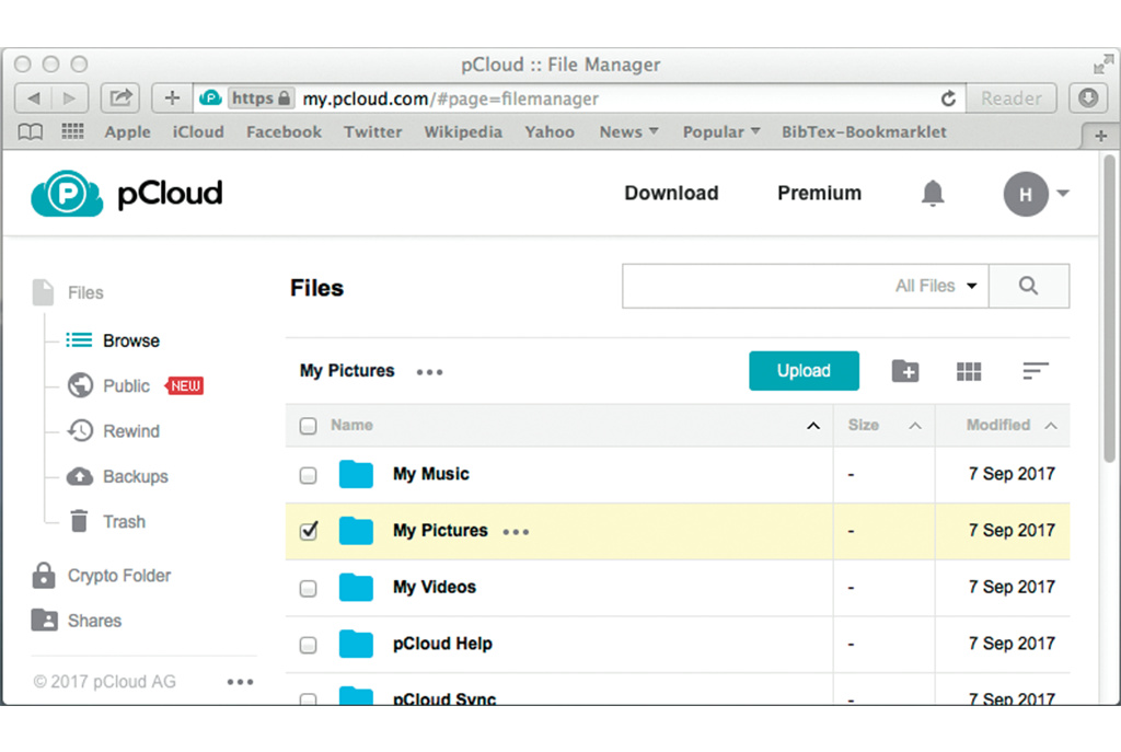Der Anbieter pCloud gewährt Nutzern des gleichnamigen Diensts 10 GByte Web-Speicherplatz gratis; zusätzlichen Speicherplatz kann man gegen regelmäßige Zahlung oder nach Einmalzahlung auf Lebenszeit mieten. Dateien lassen sich unverschlüsselt per Browser in einer anpassbaren Verzeichnisstruktur speichern.