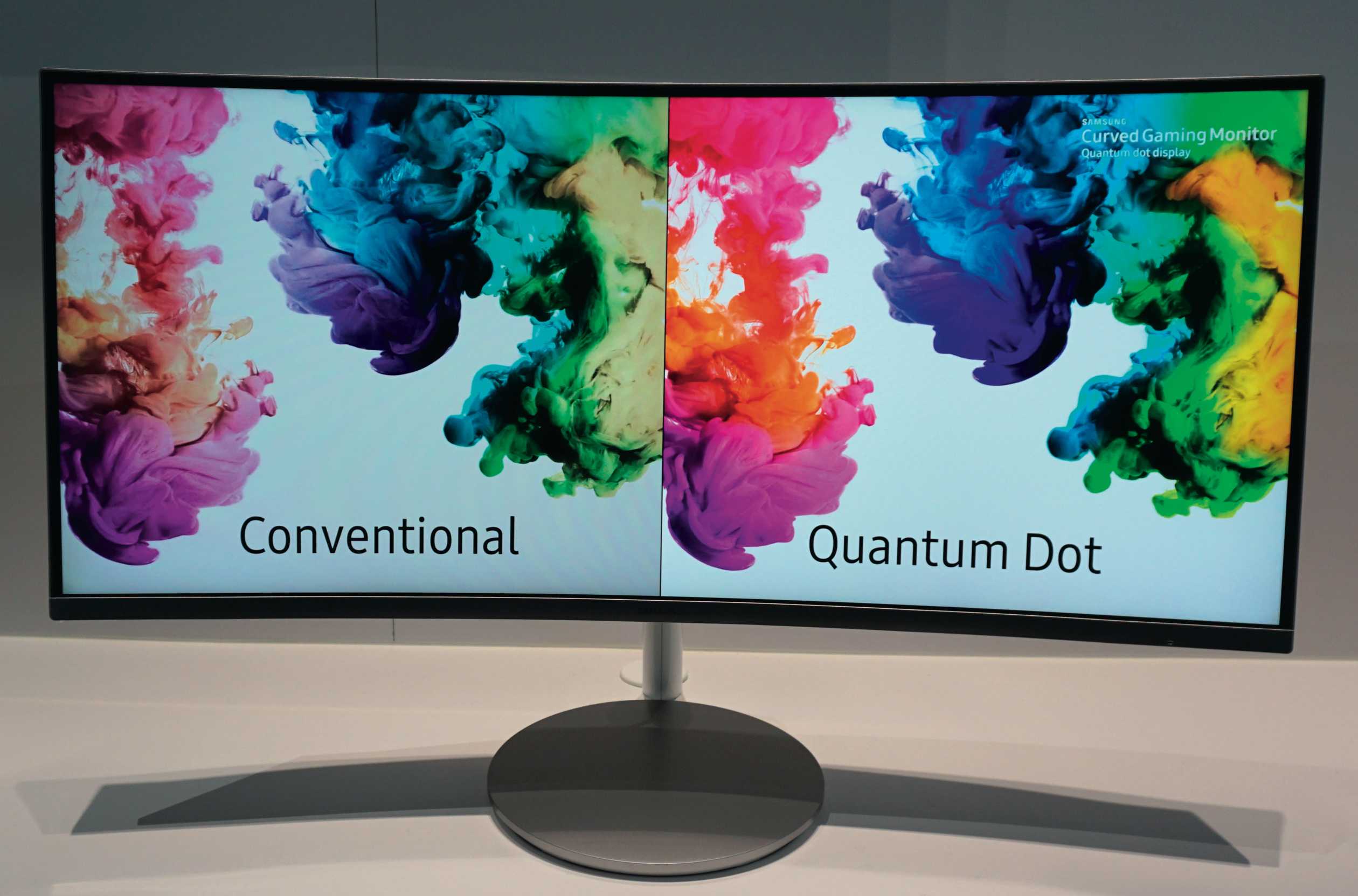 Satte Farben standen eine Zeit lang nicht im Fokus der Monitorhersteller. Das scheint sich zu ändern. So will Samsung nun auch Monitoren mit Quantenpunkten auf die Sprünge helfen. Die Nanopartikel am LED-Backlight emittieren bei optischer Anregung Licht größerer Wellenlängen, verschieben also Teile des blauen LED-Lichtes (um 450 nm) in höherfrequente Rot- und Grün-Anteile (Wellenlängen um 530 und 650 nm). So entsteht ein sehr sattes Rot und ein leuchtendes Grün.