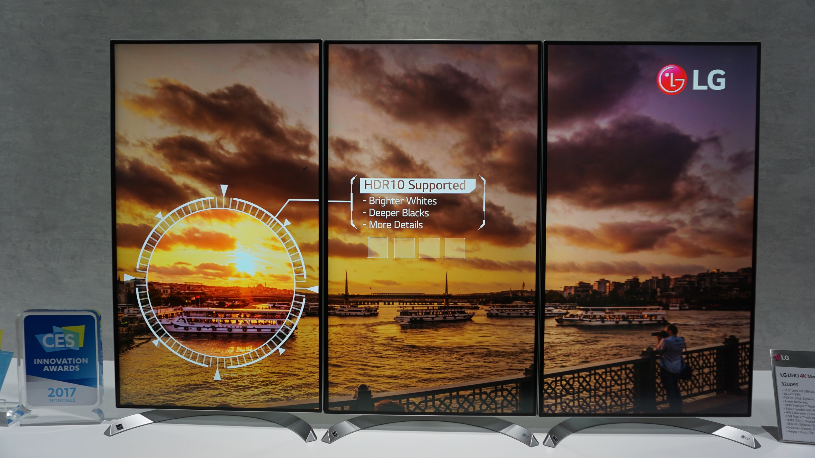 Bei LG erkennt man die gebogenen Schirme am „C“ im Produktnamen, etwa beim 34UC99: Der gebogene 34-Zöller mit Ultra-HD-Auflösung lässt sich unter anderem per USB-C ansteuern.