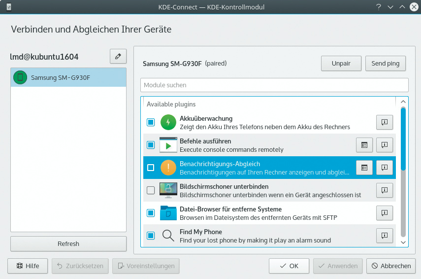 Das Smartphone stumm schalten, sich ganz auf die Arbeit am PC konzentrieren und trotzdem nichts verpassen: KDEConnect verbindet via WLAN eine auf dem Mobiltelefon installierte App mit dem Linux-Desktop. Dort werden zum Beispiel Benachrichtigungen des Smartphones angezeigt, seien es SMS, E-Mails, Twitter-Nachrichten oder der Akkuladestand. Ruft jemand an, erscheint auf dem Desktop eine Meldung.