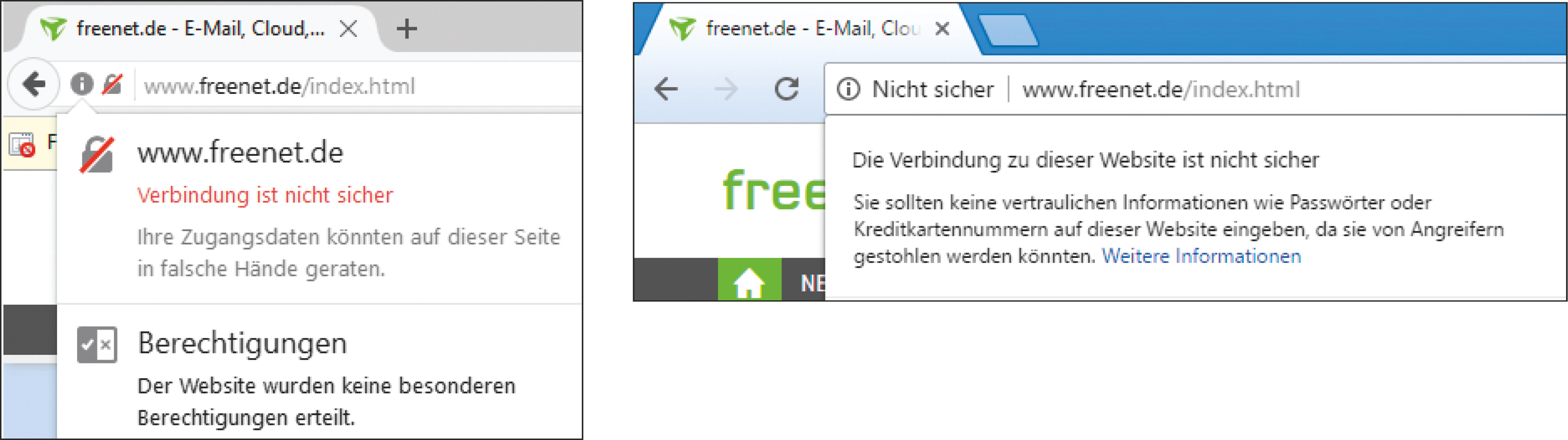 Chrome 56 warnt den Anwender durch den Hinweis „Nicht sicher“ neben dem Adressfeld. Wie Firefox unterstützt Chrome 56 nun WebGL 2. Das noch nicht abschließend standardisierte TLS 1.3 (siehe S. 172) ist ebenfalls an Bord. Wie ein kurzer Test ergab, funktioniert das bereits; der Nutzer muss dazu aber TLS 1.3 derzeit noch händisch unter chrome://flags aktivieren. (lel@ct.de)