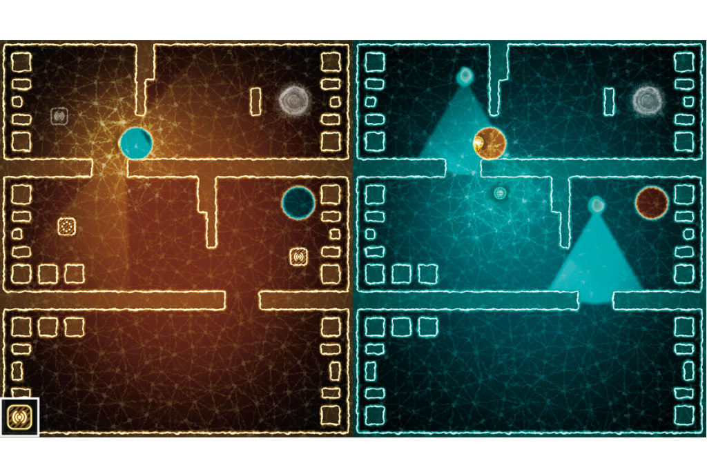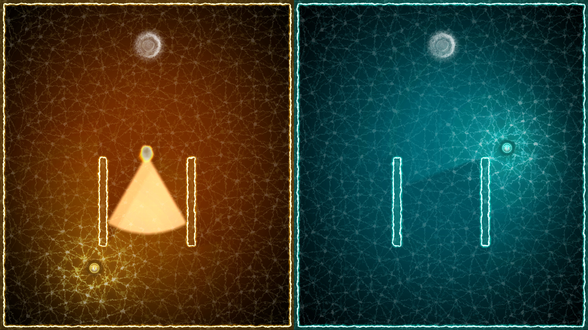 Das Ziel besteht in jedem Level darin, eine blaue und eine orangefarbene Amöbe zu einem Portal zu bugsieren. Die Parallelwelten unterscheiden sich voneinander durch die Anordnung von Hindernissen, Feinden und Extras. Vor allem leuchtende Wächter blockieren oft den direkten Weg. Sobald man in ihr Gesichtsfeld gerät, muss man den jeweiligen Level von vorn beginnen. Angesichts der überschaubar bemessenen Spielabschnitte ist aber der Frustfaktor gering – selbst bei mehreren Fehlschlägen.