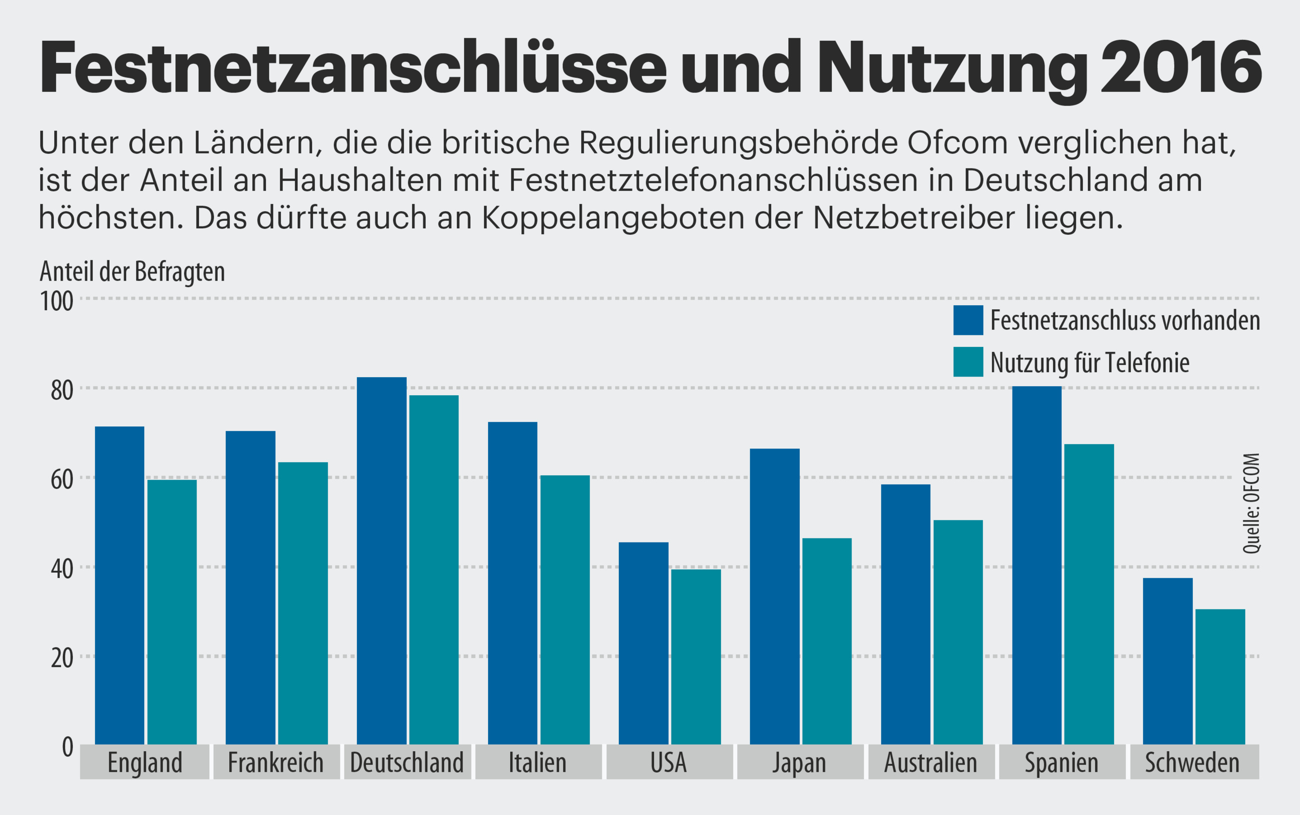 Zudem lässt die Festnetz-Telefonie in puncto Sprachqualität zu wünschen übrig: Zwar eignet sie sich auch für die Übertragung von Audio-Signalen in hoher Qualität, sodass Gesprächspartner sehr präsent klingen (HD-Telefonie, 7 kHz Signalbreite gegenüber 3,1 kHz bei herkömmlicher Telefonie). Aber Geräte mit dem erforderlichen Sprach-Codec G.722 hat nicht jeder Teilnehmer und zwischen den Betreibernetzen fehlen Gateways für die Vermittlung der HD-Telefonie.
