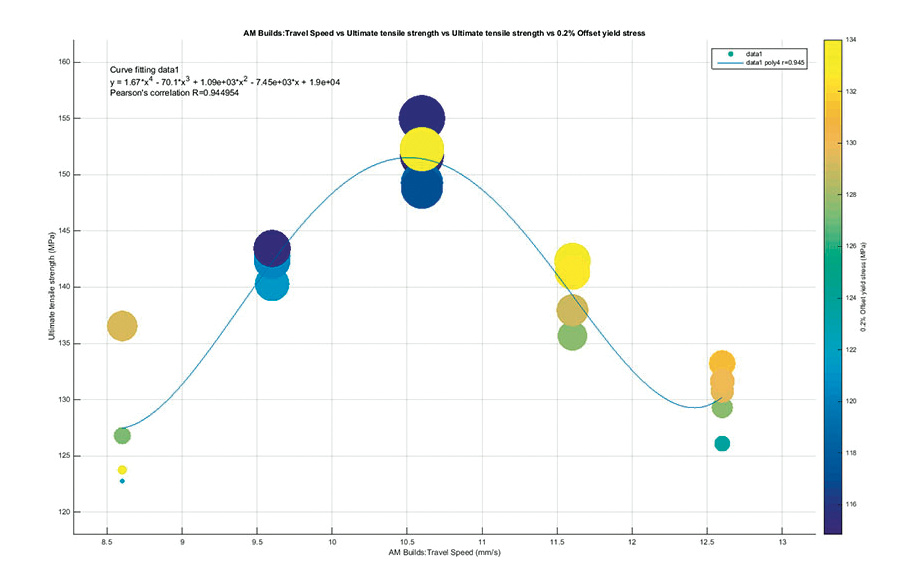 Der ebenfalls neue „Mat Analyzer“ erstellt multidimensionale Beziehungsdiagramme, um die in Granta MI abgelegten Informationen grafisch zu analysieren und Zusammenhänge zwischen 3D-Druck-Parametern und Materialeigenschaften zu verdeutlichen. (Ralf Steck/hps@ct.de)